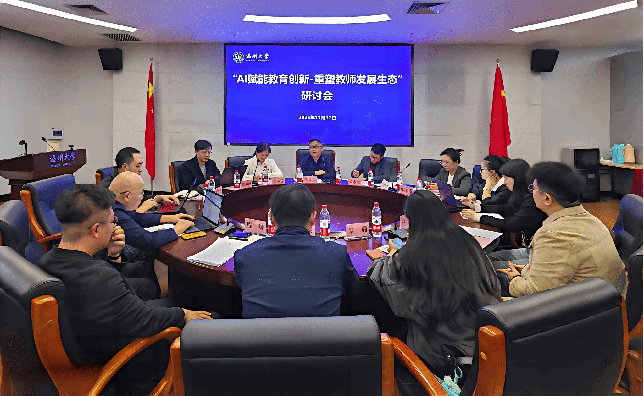 11月17日下午,在温州大学展示厅举办“AI赋能教育创新-重塑教师发展生态”专题研讨会。本次会议聚焦人工智能浪潮下教育形态的深刻变革与教师发展的未来路径,特邀香港教育大学协理副校长徐贯东教授进行专题分享与深度指导。会议由信息中心主任唐苏琼主持,教育学院副院长、人工智能与未来教育研究中心执行主任柳晨晨,以及各专业负责人、骨干教师等参加会议,共商AI时代教育发展大计。